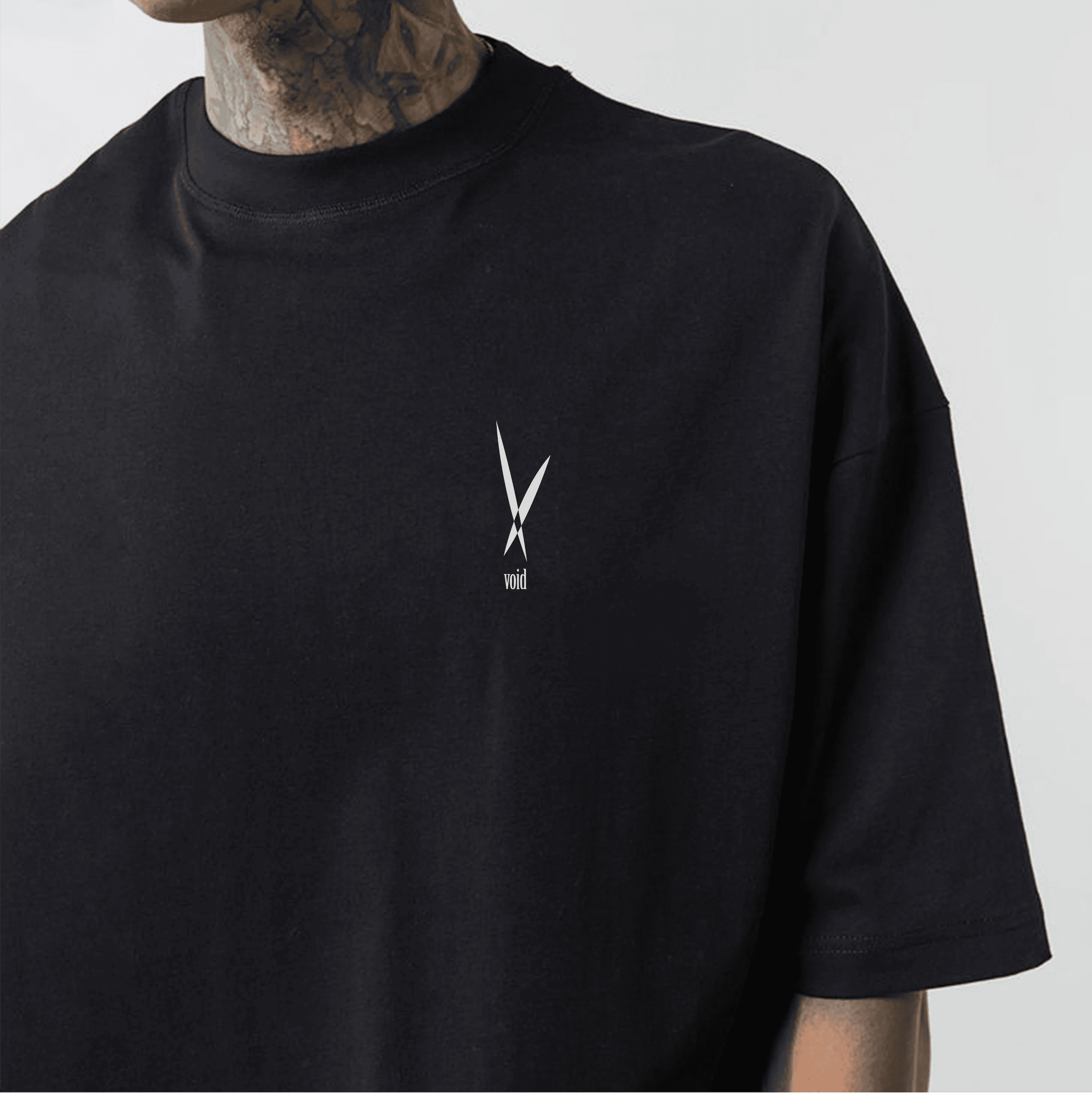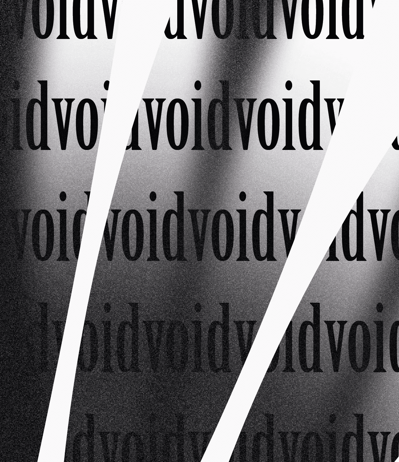 The logo takes up the motif of the cut shapes – reduced, sharp, and ambiguous – and combines it with the minimalist typography of the festival name. The T-shirts further showcase this design: subtle on the front with the logo as a trademark, loud on the back with the typographic VOID lettering as a strong visual statement. The identity deliberately plays with contrasts – subtle vs. bold, surface vs. emptiness. Thus, the festival's visual concept can also be experienced as a wearable design, transporting the atmosphere of "VOID" directly into everyday life.